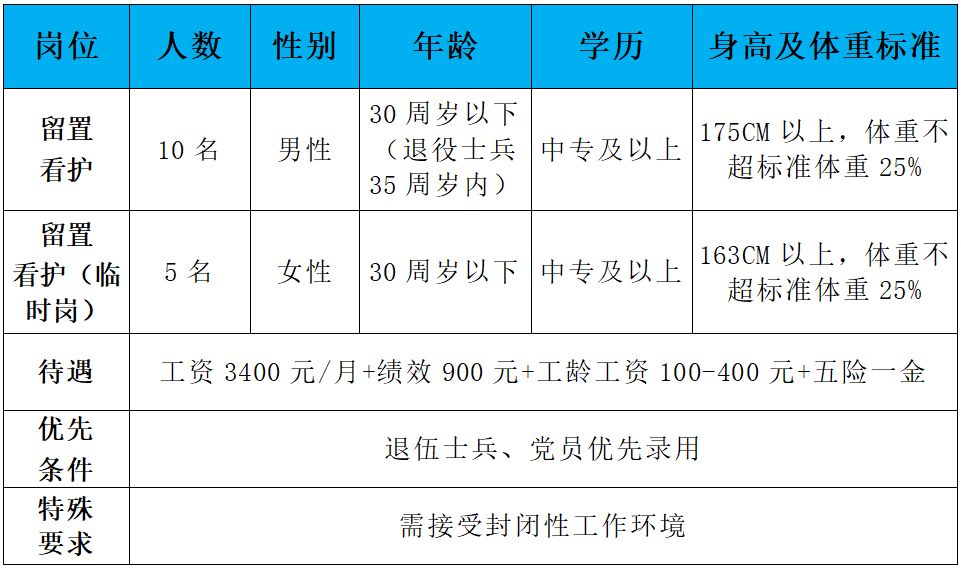 5、身心健康,體貌端正,無殘疾、無口吃、無重聽、無紋身、無色盲、無傳染性疾病,裸眼視力在4.8以上,直系親屬及本人無精神疾病病史,具有正常履行工作職責的身體條件;